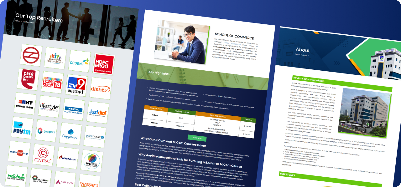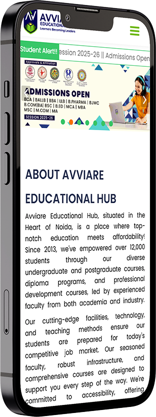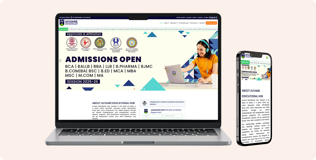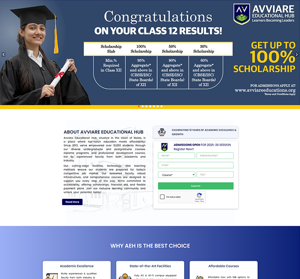 Avviare Educational Hub is the official website of Avviare Educational Hub, a growing center of higher learning committed to quality education and career readiness. Built to serve both informative and marketing needs, the site introduces students to a wide range of academic programs, facilities, and placement opportunities.