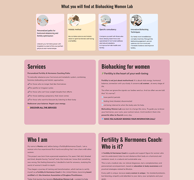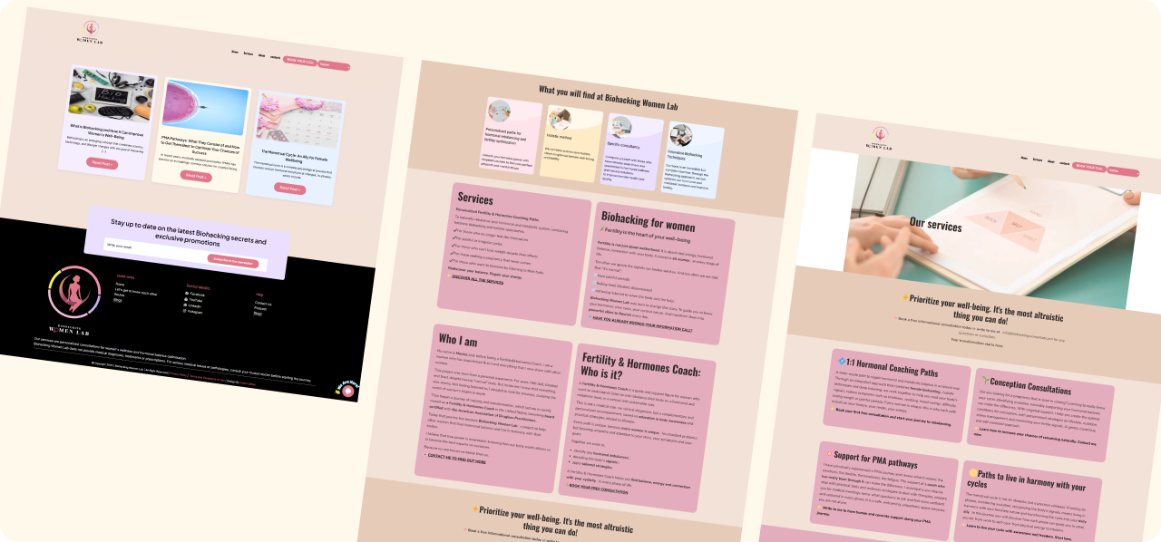 Bio Hacking Women Lab is the digital home for Biohacking Women Lab — a movement that helps women upgrade their lives through science-backed biohacking techniques. The website blends vibrant design with strong calls to action, offering a clear pathway to transformation through coaching, courses, and content. With a focus on education, empowerment, and engagement, the site is designed to be both inspiring and actionable a perfect reflection of the mission to help women take control of their wellness from the inside out.