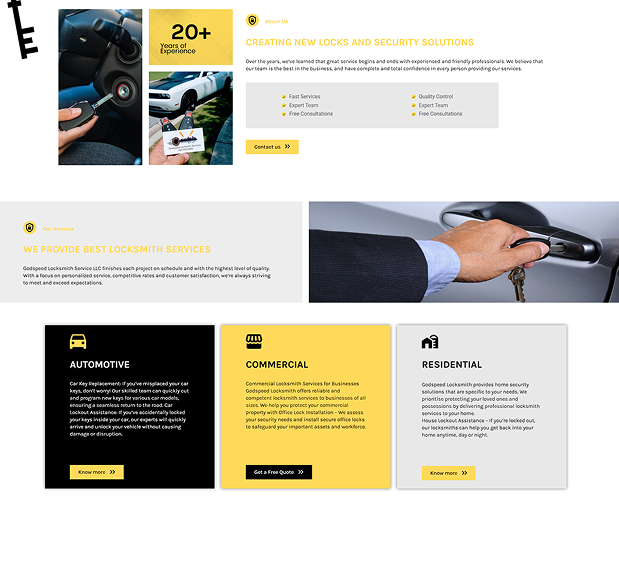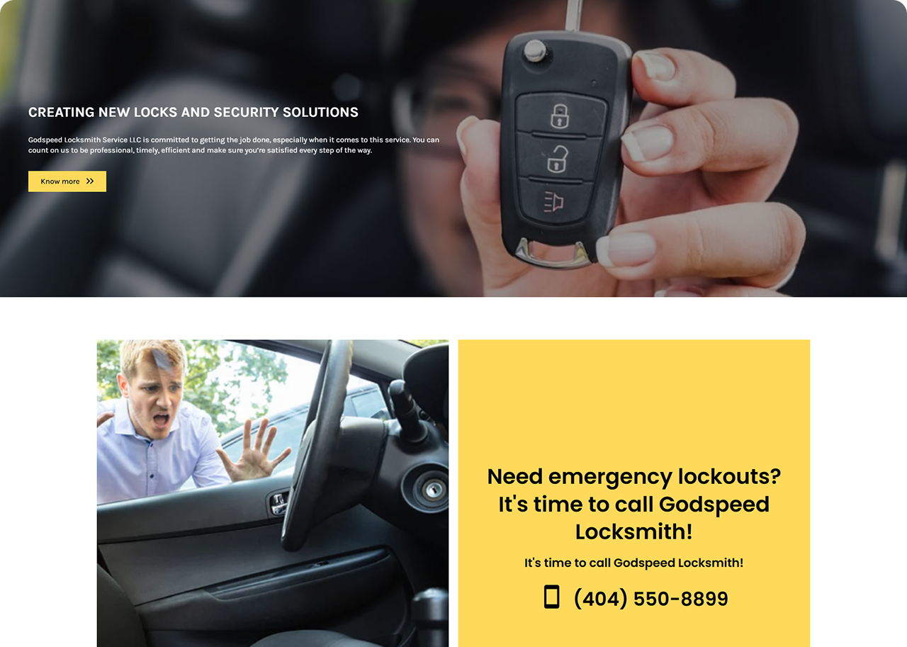 Godspeed Locksmith Services offers 24/7 residential, commercial, and automotive locksmith services with fast emergency response. The client needed a trustworthy, mobile-first website that clearly displayed services, built credibility, and encouraged immediate contact from people in urgent need.