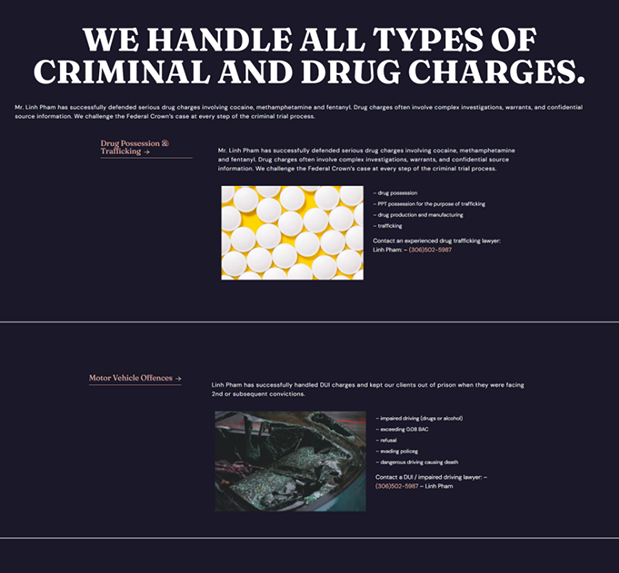 Service-specific landing pages (DUI, Drug Charges, Domestic Assault, etc.)
