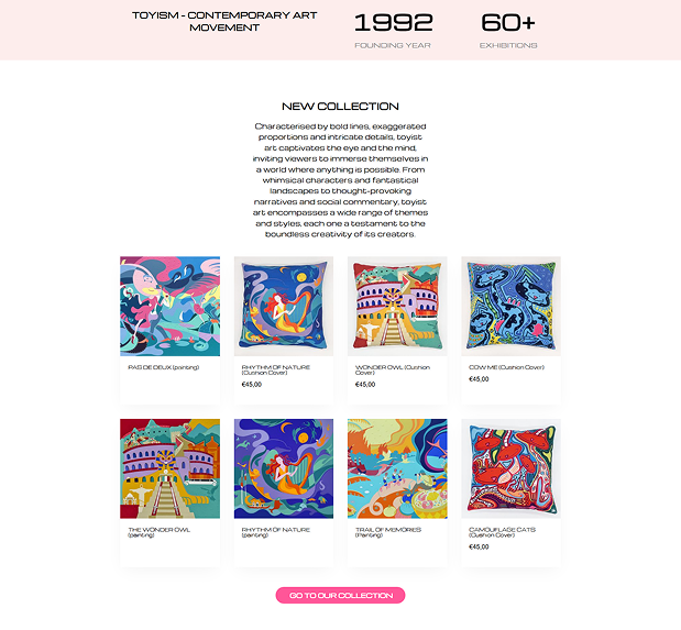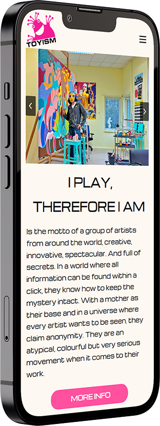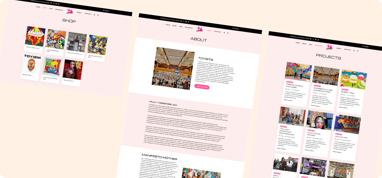 Toyism is a global art movement originating in the Netherlands, known for its colorful, symbolic, and narrative-driven art that blends surrealism and pop. The client needed a visually striking, storytelling-rich website that reflects the artistic philosophy, showcases art collections, and connects with collectors, fans, and institutions around the world.