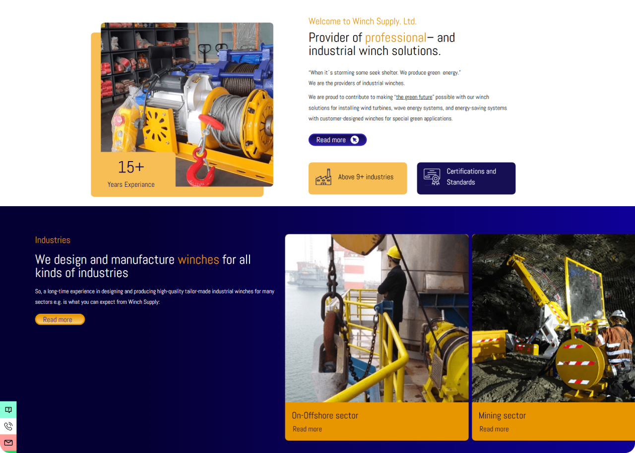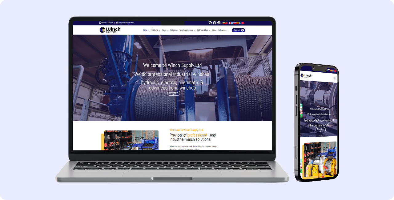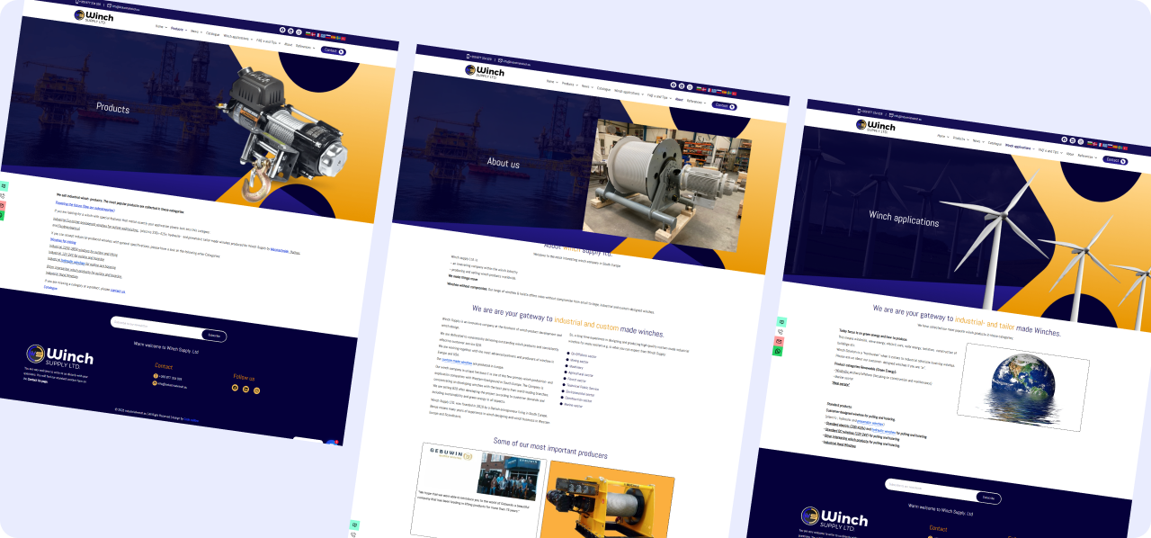 Industrial Winch is a specialist supplier of electric and hydraulic winches for industrial use across maritime, construction, offshore, and mining sectors. The client needed a technically precise, professional website to showcase their product range, provide spec sheets, and attract global B2B inquiries.