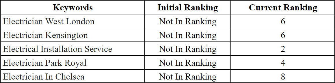 Increase in organic traffic from 0 to the very 1st page of Google for all targeted keywords.